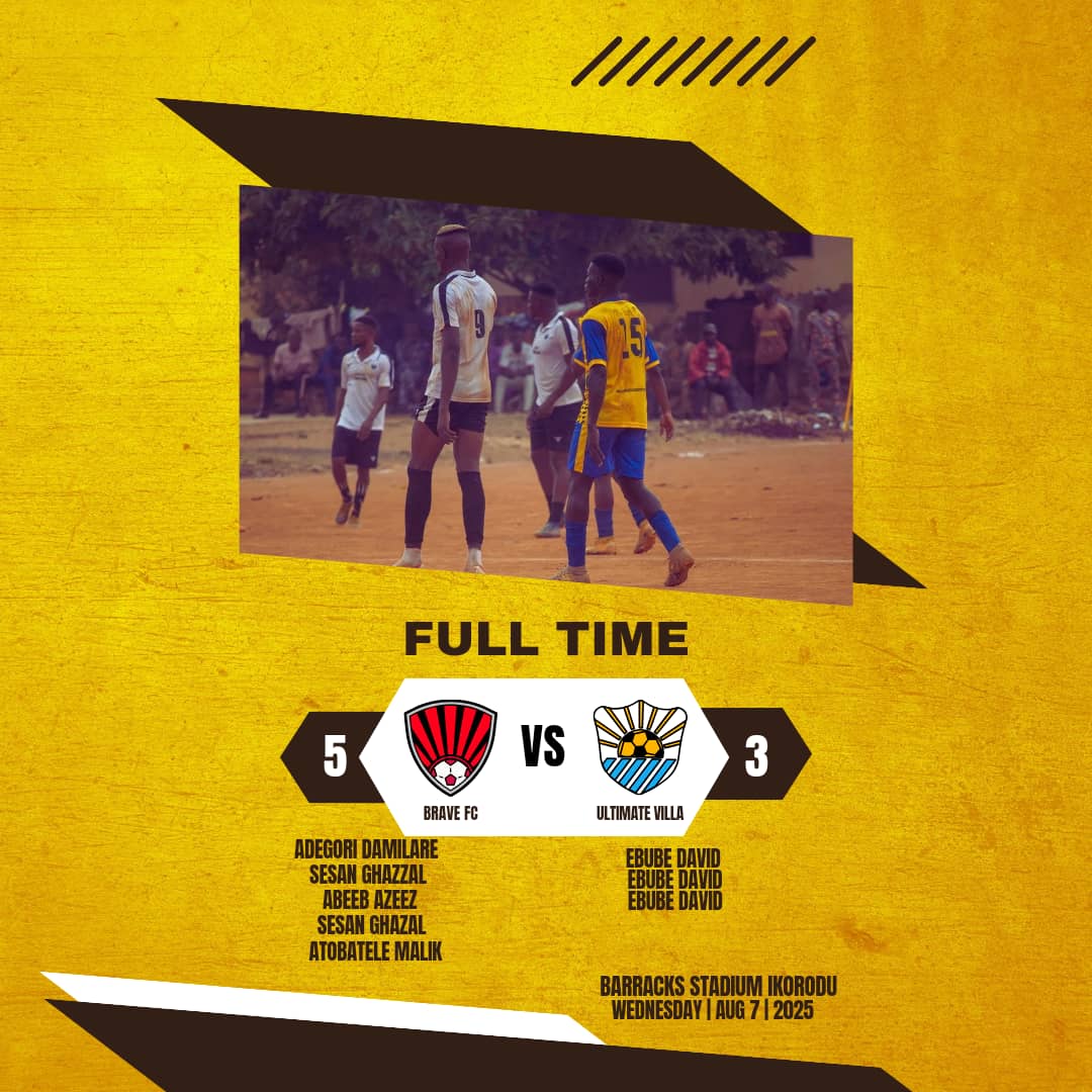 In conclusion, Brave FC’s 5-3 victory over Ultimate Villa will go down as one of the most memorable comebacks in recent local football history. It’s a reminder to all football fans that this sport is never over until the final whistle blows.