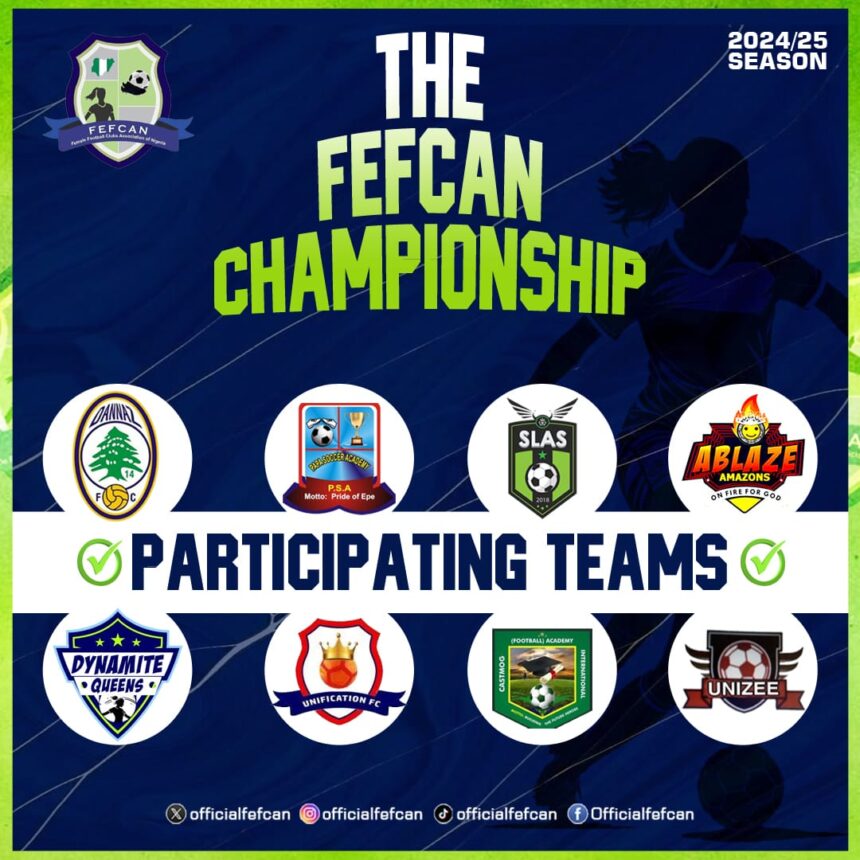 The stage is set for what promises to be one of the most exciting women’s football tournaments in Nigeria as the Female Football Club Association of Nigeria (FEFCAN) Championship 2024/25 season prepares to kick off on July 26th, 2025. This competition will take place at Landmark Sport Complex, Agric, Ikorodu. This is the prestigious venue that hosted the Nationwide League One. This premier competition will bring together eight exceptional teams from across Nigeria, showcasing the incredible talent and passion that defines women’s football in the country.
